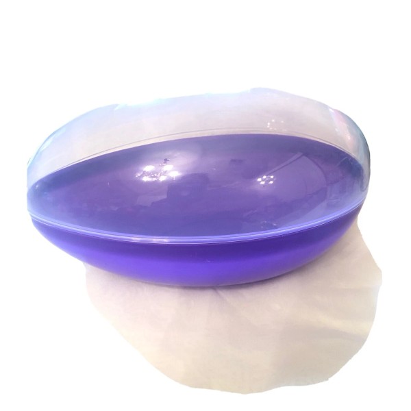 Brand new x large jumbo fillable purple plastic container Easter egg traditional egg shape-size is jumbo 9.875”X 6.625” X 5.5” inches. Egg is approx 9 1/2 “ long, 6 1/4” wide when open.