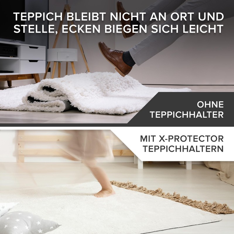 - Are you tired of non-slip rugs or rugs that interfere with walking? Forget it! Stop your carpets and make flat corners with X-PROTECTOR carpet stopper!