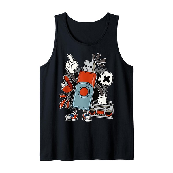 X Retro Robot Character Fun Cartoon Boom Box Flash Drive Tank Top