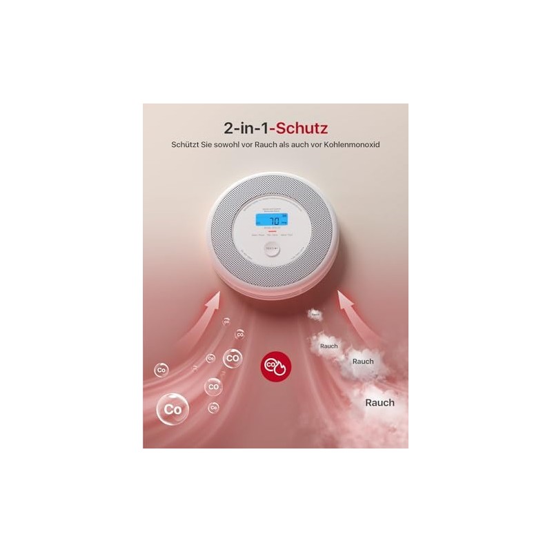 - Talking smoke and CO detector indicates the location: thanks to this talking detector that tells you what's going on where, you can quickly detect any danger: when smoke or CO is detected, you will hear a voice saying, "Warning! Smoke detected in living room. Evacuate." or "Warning! Carbon monoxide has been discovered in living rooms. Embark on the fresh air." (Only the German language is supported)
