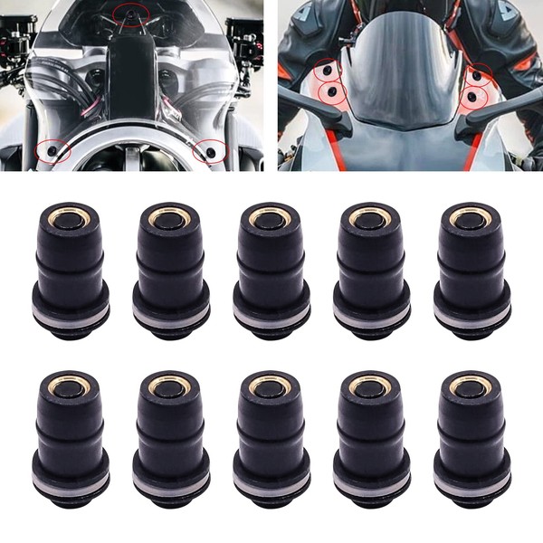 X-STYLE 10pcs M5 5mm Screen Bolts & Wellnuts for Motorcycles Windscreen Windscreen Windshield Screws Wellnut with Allen Key Universal (Black)
