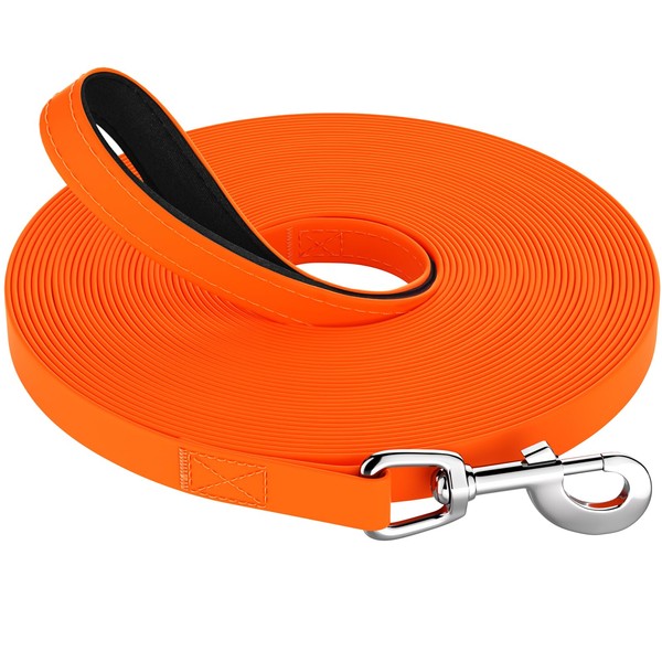 - 【Upgraded Waterproof Training Lead for Dogs】This long dog lead not only has the same function as other dog leads on the market, but also has waterproof performance. With our dog leash, you don't have to worry about the dog long line absorbing water and becoming as heavy as an iron chain in humid and rainy weather and muddy ground. The dog lead will not mold or smell, as it is easy to rinse and dry. Dogs can run freely in dense grass, swim at the beach, and explore in the forest