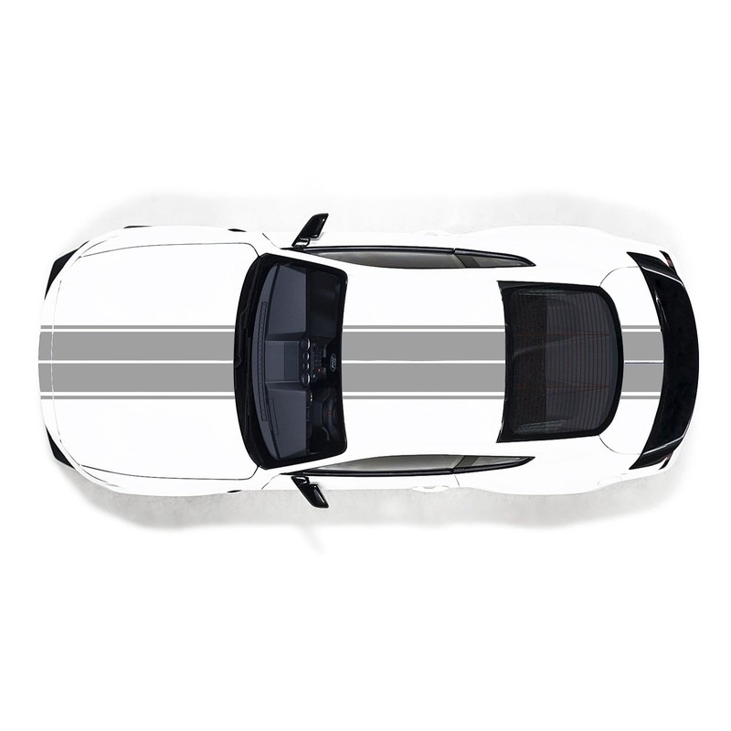 x xotic tech Double-Dual Sport Racing Vinyl Stripe Graphics Hood Roof Trunk Bumper Decal Sticker Trim, Compatible with Ford Mustang 2015-2023 (Gray)