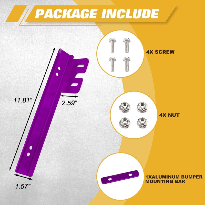 - Universal Fit: The front license plate relocator bar is widely applicable to most cars. Dimension: 11.81"x 1.57"x 2.59". Please confirm the product size before purchasing.