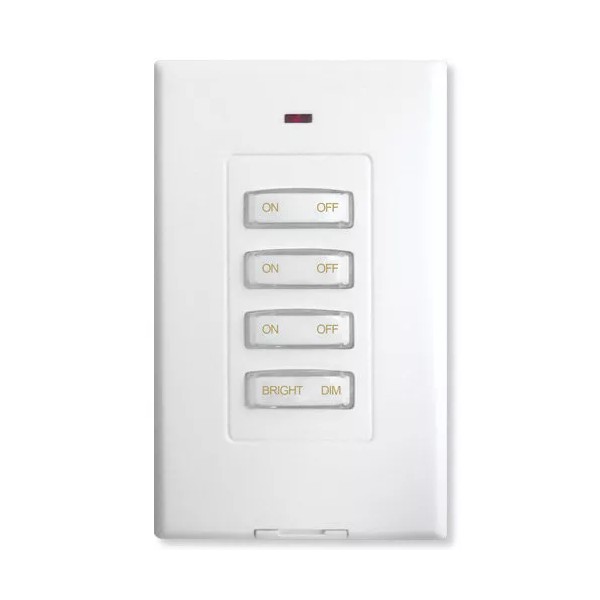The switch's top three buttons control three X10 receiver modules on consecutive X10 addresses (i.e. - A1, A2, A3). The bottom button Dims/Brightens any lights connected to Lamp Modules or Wall Switch Modules.