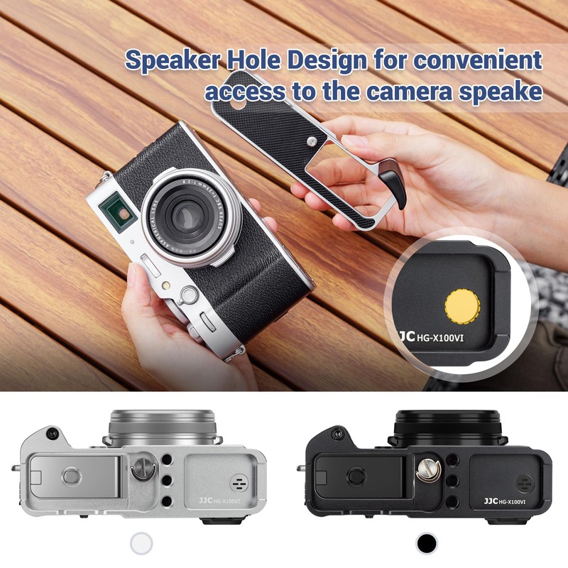 X100VI Metal Hand Grip, Secure Handle L Bracket for Fuji Fujifilm X100VI Camera,Anti-Slip Pads Design, Arca Swiss Quick Release Plate, Extra 1/4"-20 Tripod Hole & Hand Strap Hole, Black Color