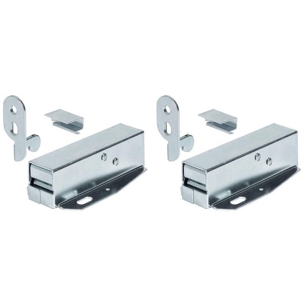 x2 Tutch Latch Automatic Spring Catch for Press to Open Cupboard Doors and Loft Attic Hatches, Bright Galvanised Steel, Counterpiece + Catch