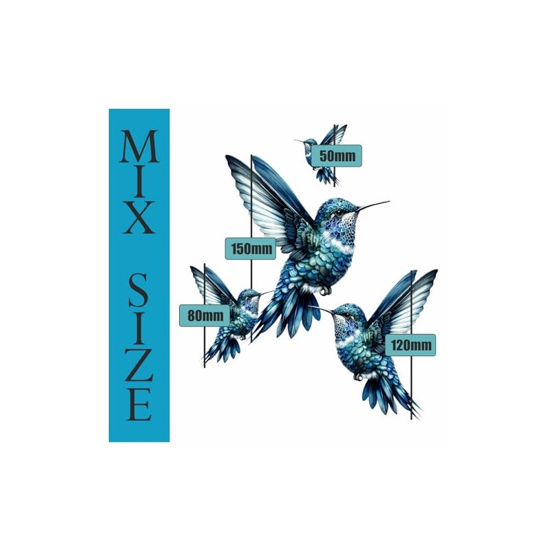 x4 Humming Bird Stickers for Wall Decor, Covering Marks, Mugs & Cups, Car Bumpers, Shower & Tile, Toilets, Laptop & More, Hardwearing Waterproof 0% Transparency (x4 Turqoise, A5)