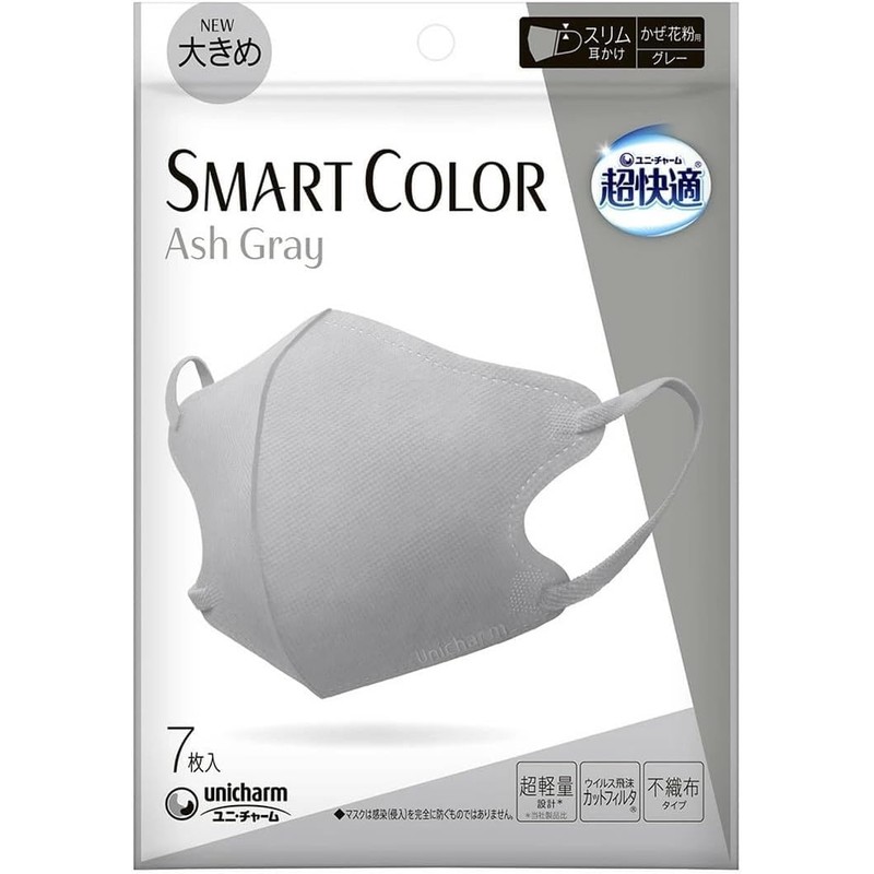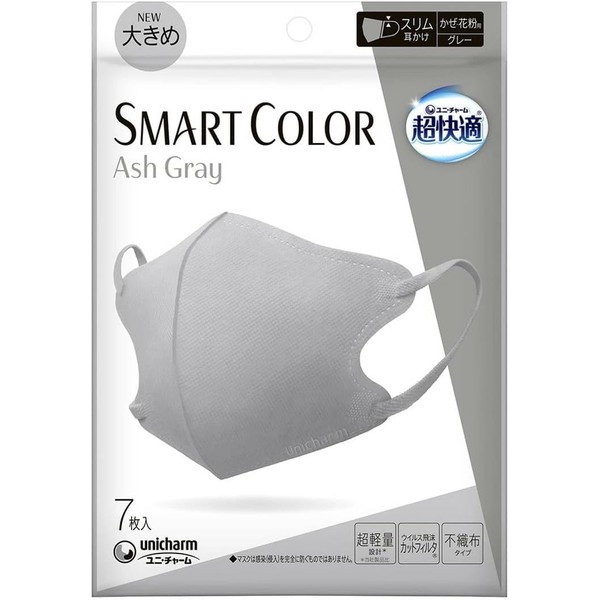 [SMART COLOR] 超快適マスク (スマートカラー) 大きめ アッシュグレー ×5個セット
