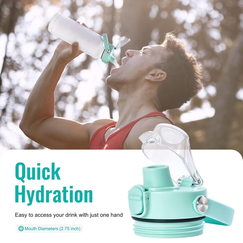 Swift Hydration: Engineered with a high-flow spout, our lid lets you guzzle water rapidly, quenching thirst in a flash during hikes, rides, or busy days. Soft handles make it easy to hang bottles on backpacks.