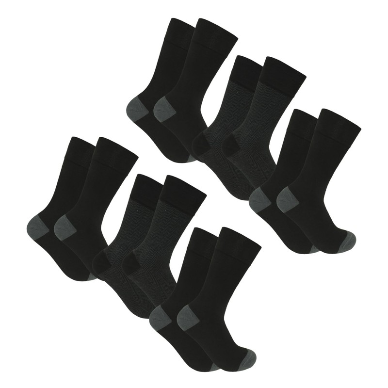 Xact Men's Bamboo Socks, 6 Pairs, Super Soft and Breathable, Antibacterial, Odour-Resistant in Gift Box (UK 7-11) (6-Pairs - Black/Charcoal Herringbone) UK 7-11 (EU 41/46)