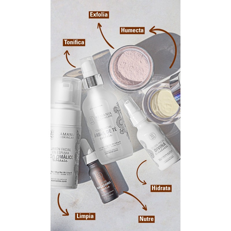 Regresa a lo natural y prueba lo mejor de Xamania con este Ritual que Limpia, Exfolia, Hidrata, Regenera , Nutre con ingredientes Clean y Creulty free. Tu piel estará feliz:) Piel renovada garantizado en 30 dias de uso*