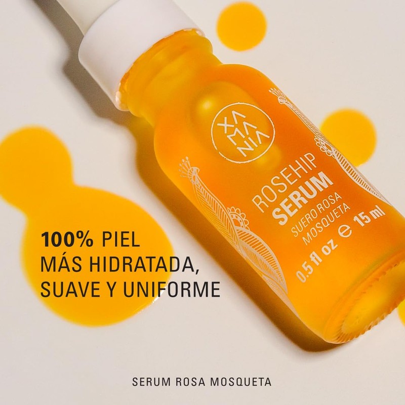 XAMANIA. Serum Rico en Vitamina C. 100% Aceite Rosa Mosqueta Orgánico. Suero Facial para el Tratamiento del Acné, Manchas y Estrías. Antiedad y Regenerante. Skin Care Orgánico - Cruelty Free [15 ml]