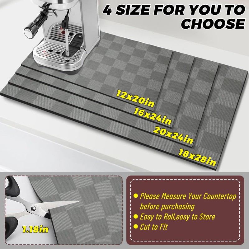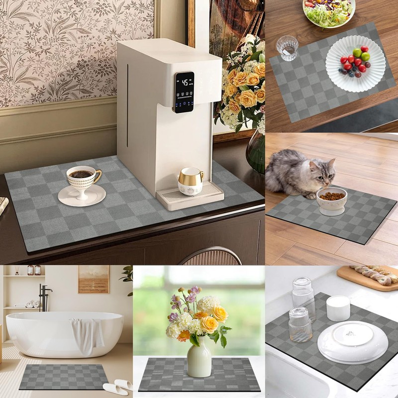 - 【Wide Use】It’s more than a coffee mat coffee bar accessory. This super absorbent and quick dry mat can be widely used as a drying mat for kitchen countertop,cups,water dispensers,mixers,ice cream machines,dish washing racks,dinner plates,tableware,used as dish drying mat and blender mat. And can be cut into cup mat,pet food mat,placemats, etc. according to your needs to meet your different needs. You can also use it as a decorative piece to enhance the aesthetic of your coffee table or desk.