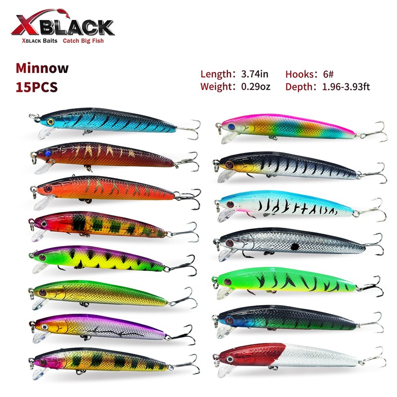 XBLACK Hard Fishing Lures Set Minnow Lures Set 30PCS for Beginner Starter, XBLACK Baits, Catch Big Fish!
