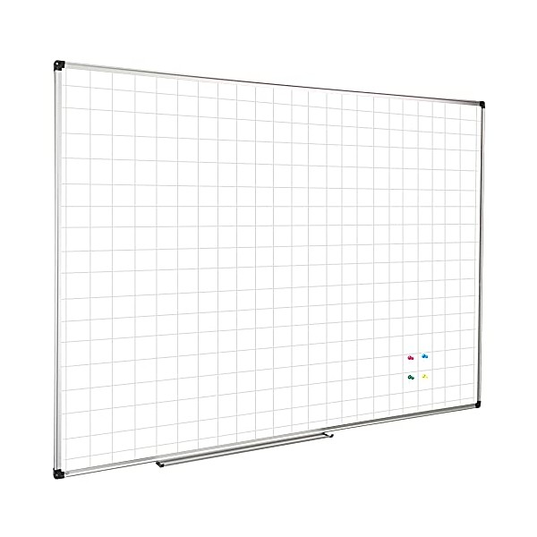 XBoard Magnetic Dry Erase Whiteboard 48" x 36", Double Sided Dry Erase White Board Planner, White Board + Grid Pattern White Board, Silver Aluminum Frame with Detachable Marker Tray for School Office