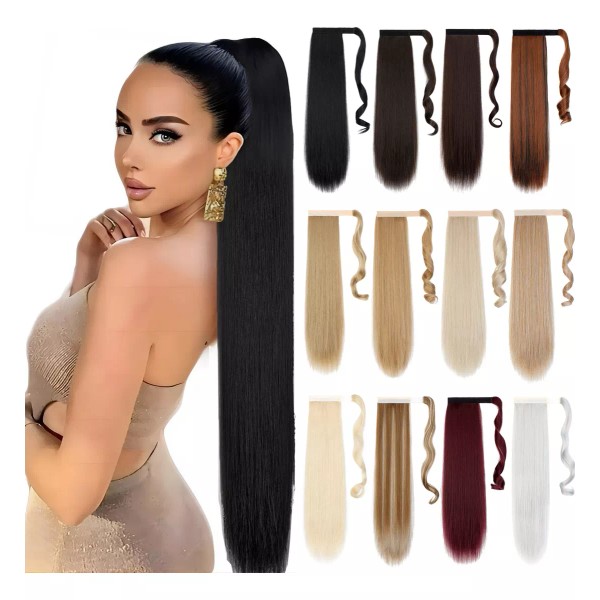 Estilo: la extensión de cola de caballo es una extensión de cola de caballo larga y recta con clip para agregar volumen y estilo a tu cabello. Perfecto para mujeres o niñas para salir o para uso diario.