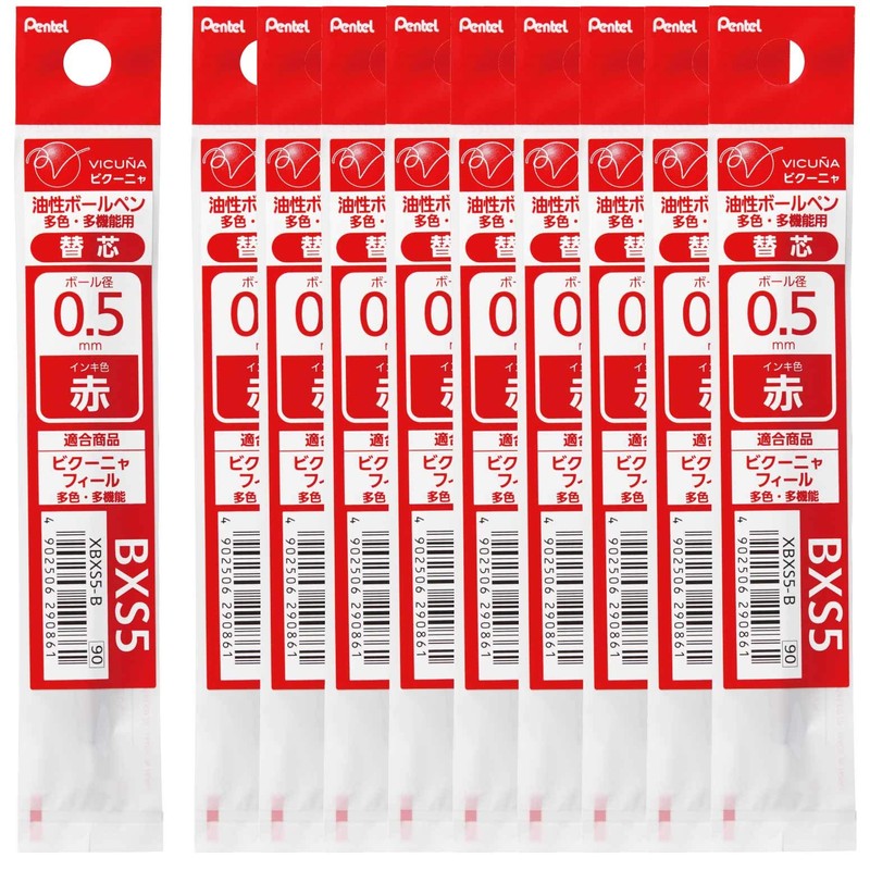 ぺんてる ボールペン替芯 XBXS5-B 0.5赤 10本パック