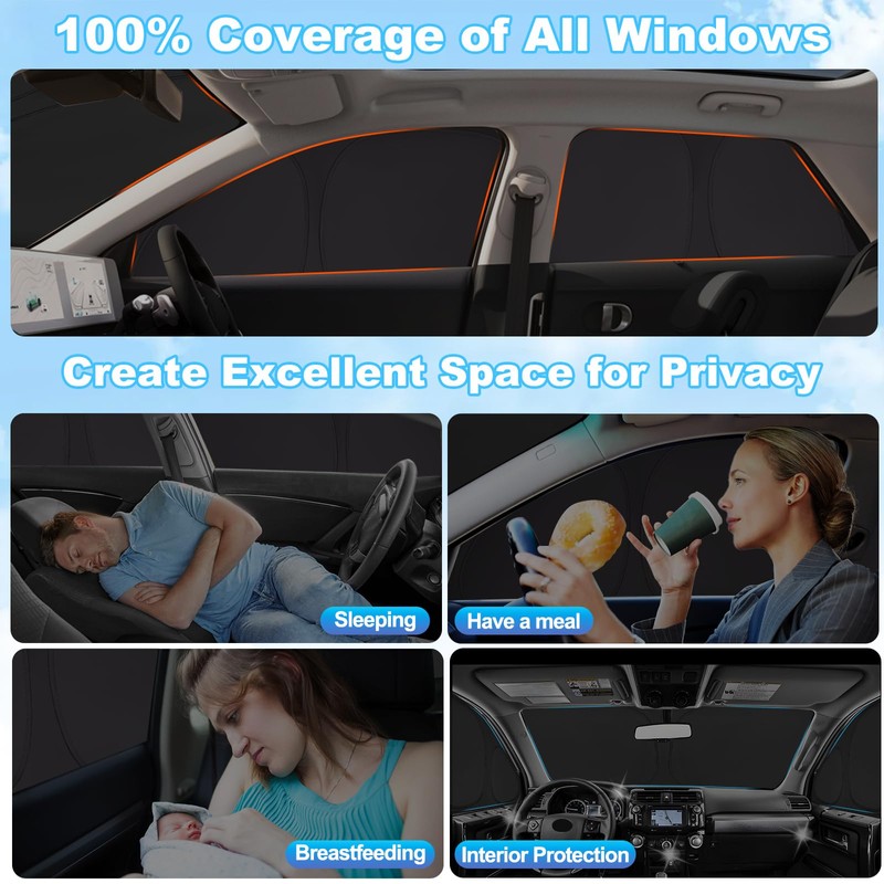 - Car Privacy Window Cover: Whether you're into camping, road trips, baby care, or simply seeking more privacy for rest without disturbance, these car privacy shades offer a secluded space within your vehicle. Ideal for those cherished moments during camping adventures