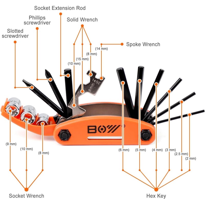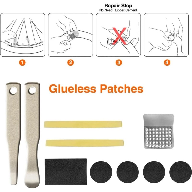 - Portable Bike Repair Kit include 16 in 1 multi tool,2 iron Tire Levers and 5 Pre-glued Patch Tire Patch, Metal Files, All in One Mini Tool Bag.