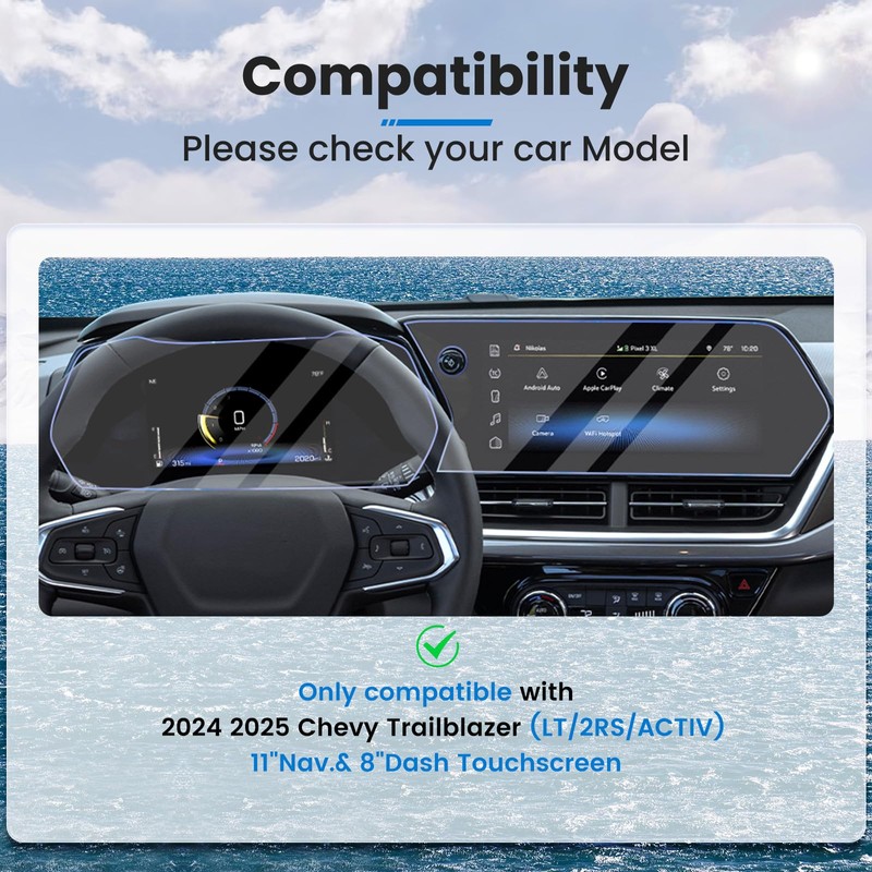 • GREAT CHOICE FOR A NEW CAR:Screen Protector for 2025 2024 Chevy Trailblazer LT/2RS/ACTIV is an ideal choice for your new car or your friend’s new car