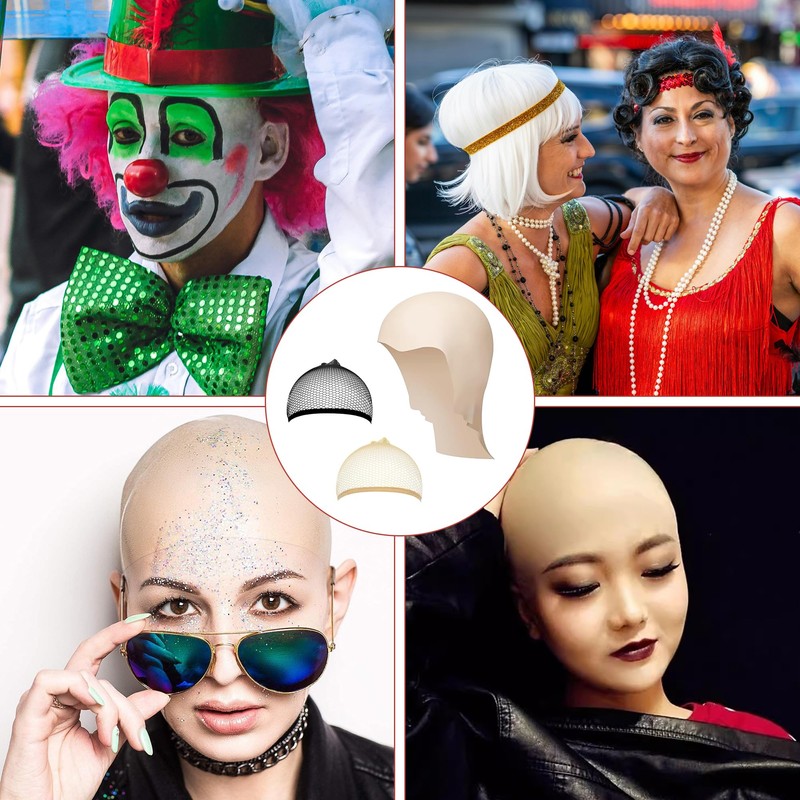 • PACKAGE CONTENT You will get 1 reusable latex bald cap and 2 mesh head wig caps. You can dress up with your family and friends