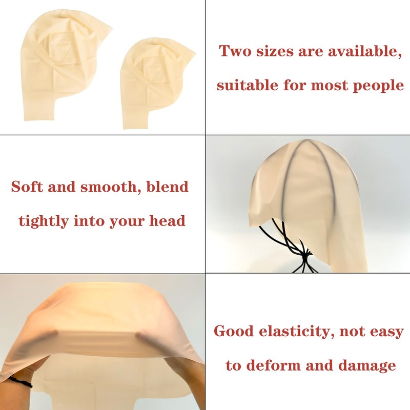 • High Quality Materials Our bald caps are made of high quality latex materials, which are elastic, tear resistant and durable. They are available in two sizes and suitable for different head sizes