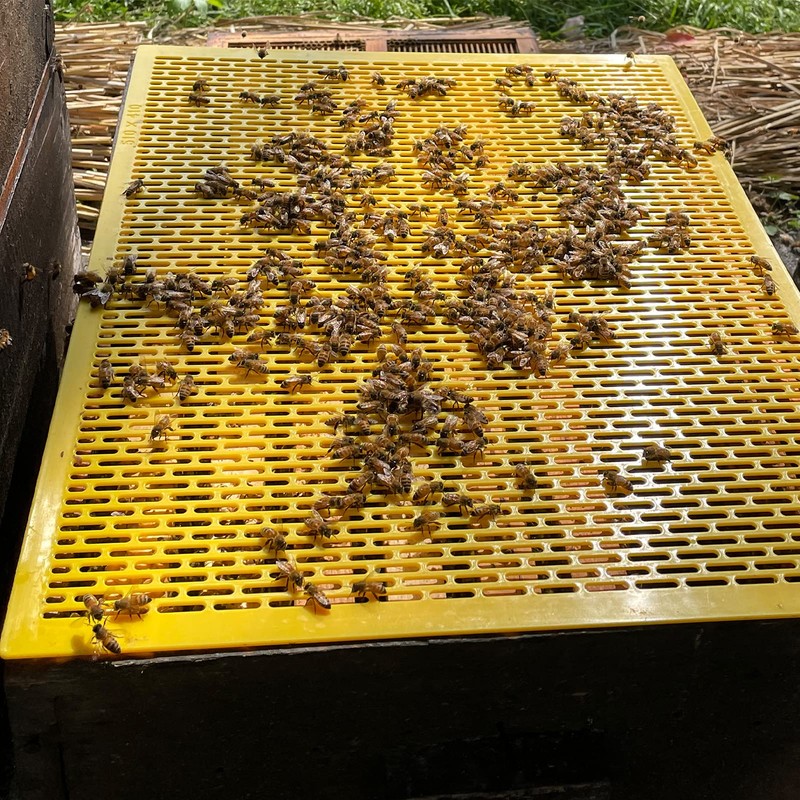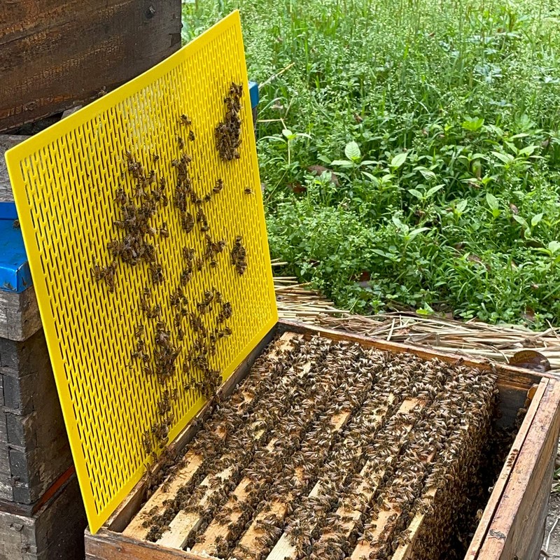 to the new environment in the eliminator area. - Useing this plastic queen bee excluder to give the queen bee a suitable area to grow,work and lay