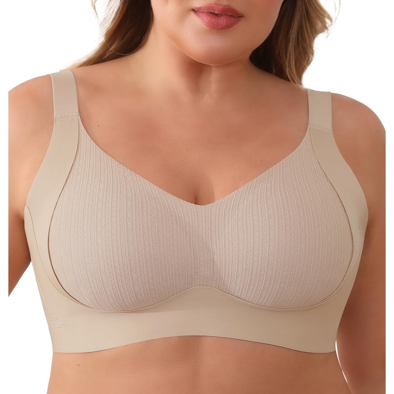 Xcutting Lace Vertical Stripe Pull Up Bras for Women No Underwire Wireless Seamless Bralette Comfort Supportive Full Coverage Bralettes T Shirt Bra Bralettes Plunge T Shirt Bra (Nude,X-Large)