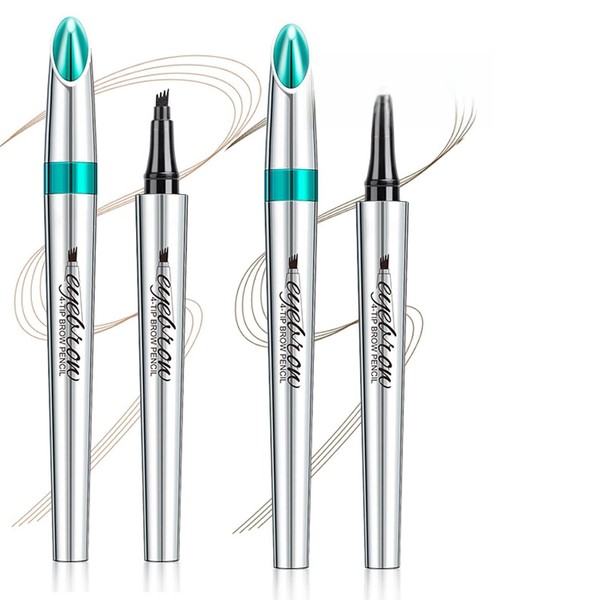 XdealCozyxc 2 Pcs Microblading Eyebrow Pen, Waterproof Tattoo Brow Pen with 4 Micro-Fork Tip Long-Lasting & Smudgeproof (Light brown + dark brown)
