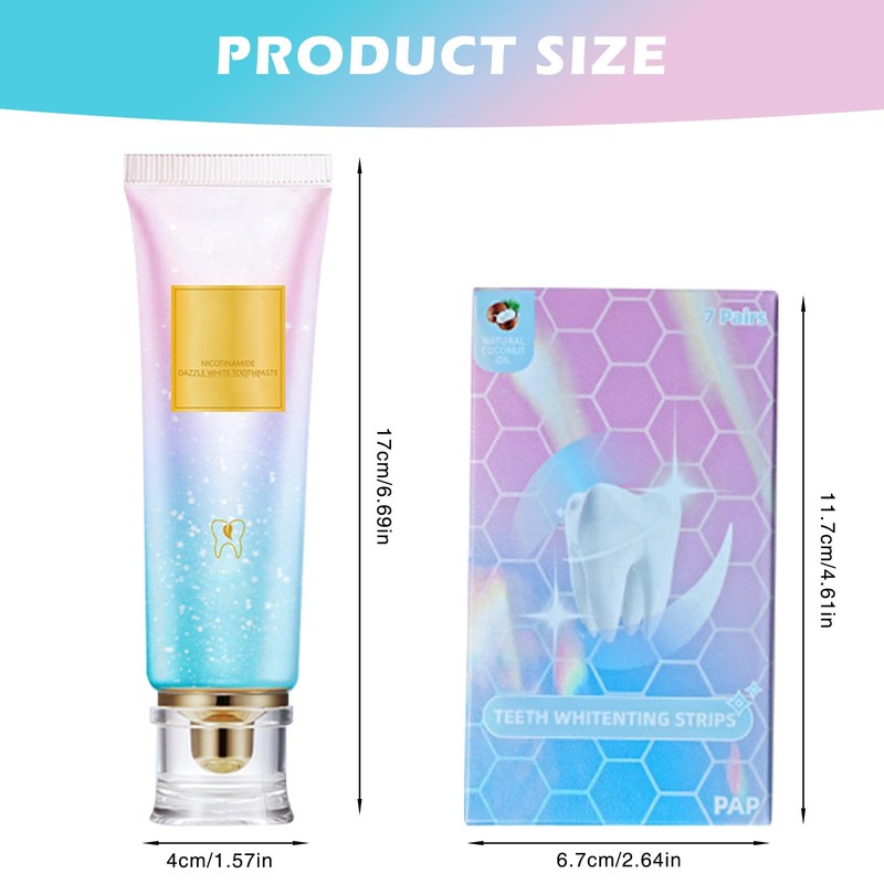 Xdealcozyxc 2PCS Niacinamide Whitening Toothpaste with 7 Pair Teeth Whitening Strips, Toothpaste Oral Cleaning Teeth