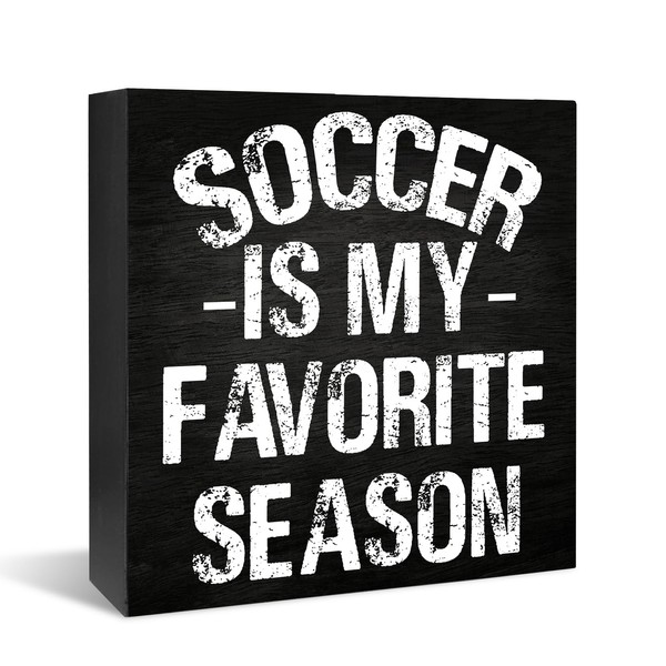 XDFVL Soccer Decor Sign, Soccer is my Favorite Season, Soccer Decor for Boys Room, Wooden Box Table Sign, Soccer Bedroom Decor, Soccer Birthday Party Decorations 5 x 5 Inch