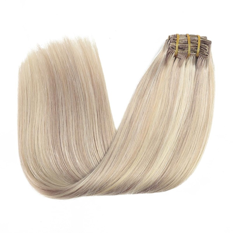 XDhair 22 Inch Clip in Hair Extensions Human Hair,120g 6pcs Ash Blonde Highlights Bleach Blonde Clip in Hair Extensions for Women (#18/613,22Inch)