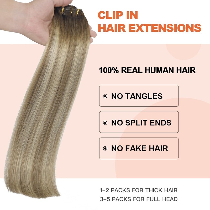 - 【Clip in Hair Extensions Specification]】6 pieces with 18 clips per set,14inch and 16inch 100g with clips,18inch to 22inch 120g with clips.Just to thicken your hair, We recommed 1-2 sets; for a full head, We recommed 2-3 sets.