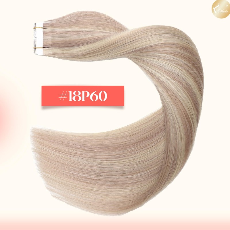 XDhair Klebeband, Extensions, Echthaar, 45 cm, Echthaar, Aschblond mit Platinblond, selbstklebend, #18P613, 20 Stück/50 g (#18P613-18)