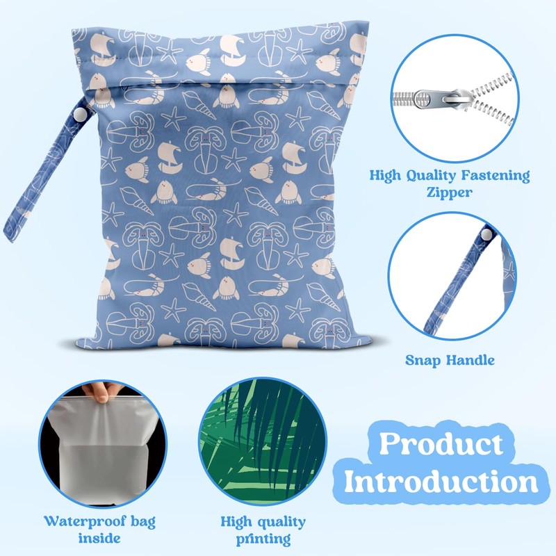 - Measurement: 12.5" x 10.2", this lightweight wet dry bag features a convenient handle for easy carrying or hanging. Spacious enough to hold up to 5 cloth diapers, it’s perfect for swim gear, beach essentials, or daily use—portable and hassle-free.