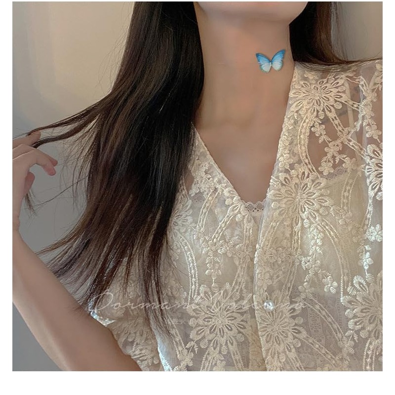 xdlhghe Invisible Necklaces for Women Purple Blue Butterfly Rhinestone Choker Necklace Fishing Wire Clear Gargantillas Para Mujer Necklaces Beachy Charm Statement Trendy Jewelry (Yellow)