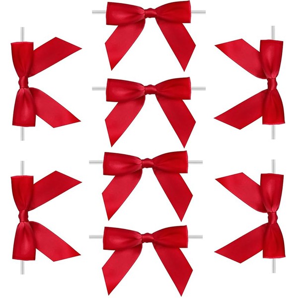 Xeahung 60 Pcs 3 Inch Twist Tie Bows Satin Ribbon Twist Tie Bows with Twist Ties Small Ribbon Bows for Craft Twist Bows for Cookie Bags Wedding Craft Gift Wrapping Decoration Party (Red)