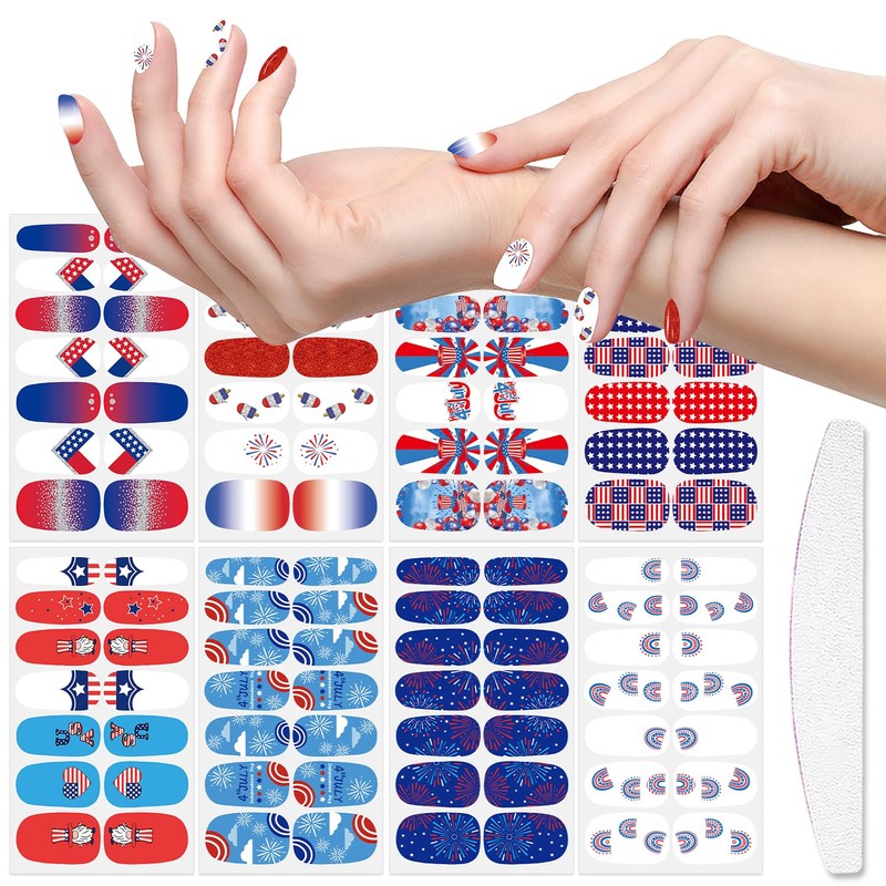 XEAOHESY 112 Pieces 8 Sheets Independence Day Nail Polish Strips 4th of July Nail Wraps Self-Adhesive Patriotic Stickers for Memorial Day(Design-3)