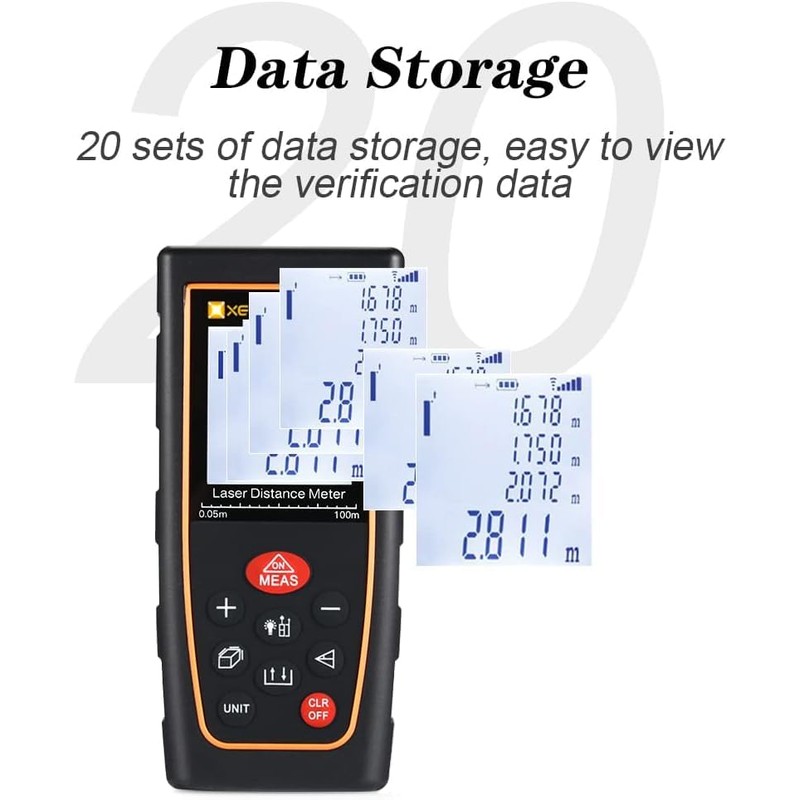 XEAST Laser Rangefinder, 100 m, Measuring Range ±1 mm, Measuring Unit M/In/Ft, 20 Data Storage Function, Automatic Calculation of Area/Volume/Pythagorean IP54