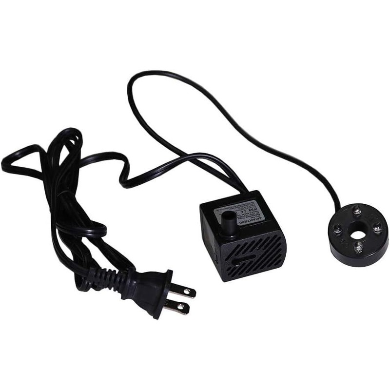 SUBMERSIBLE WATER PUMPThe water pump is designed to circulate water and add oxygen to water, making it more attractive for your fish or turtles.Stable & duarable motor works smoothly and quiet, providing you a comfortable environment.It can be used for tabletop fountains, aquarium, water gardens and hydroponic systems.COLORFUL LED LIGHTS4 energy-saving LED lights gradually cycles in red, blue, green, yellow, highlighting your fountain landscape and decorating your night.EASY INSTALLATIONThe mini size makes the pump easy to hide or disguise in the water.2 strong suction cups at the bottom are great for mounting onto the glass surface, either vertically or horizontally.DETACHABLE & CLEANABLEThe device doesn't need any tools to disassemble it, and is very easy to be cleaned.WATER FLOW CONTROLPull the knob to control the water flow rate, so you can get the water pressure you want.SPECIFICATIONS-Voltage: 110-120V-Frequency: 50Hz-Power: 3W-Max Flow Rate: 180L/H-LED: Red/Green/Blue/YellowNOTE:1, To avoid damage, always keep the pump under water before powering it up.2, The pump connector diameter is 10mm, fitting only hose with 10mm inner diameter.