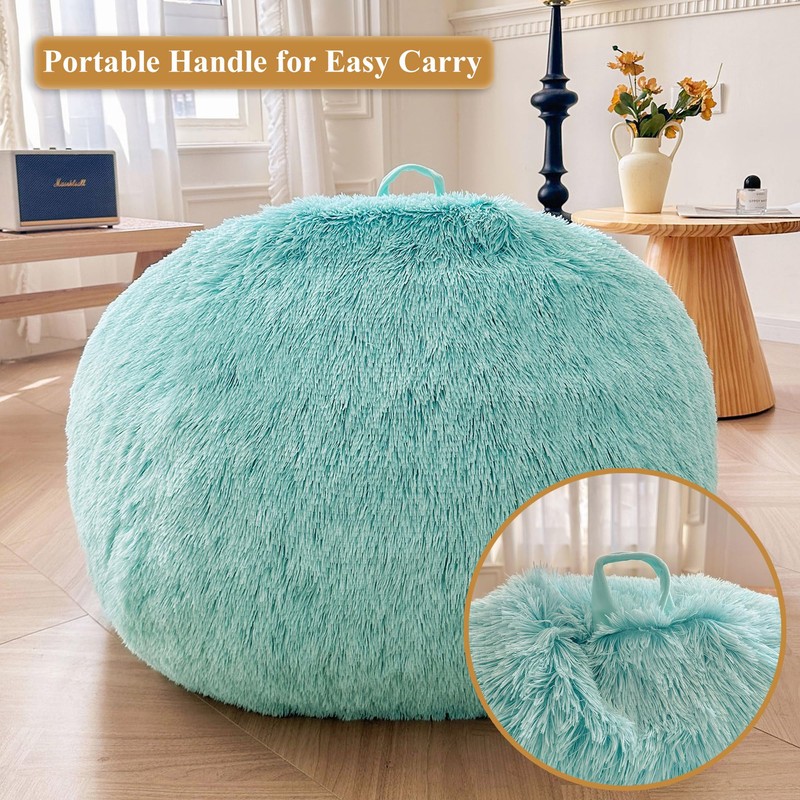 XeGe Kids Fluffy Faux Fur Bean Bag Chair Cover (No Filler), Soft Furry Stuffed Animal Storage Bean Bag Cover for Plush Toys, Shaggy Fuzzy Beanbag for Kids Teens Girls Adults, Anti-Slip, Aqua Ombre