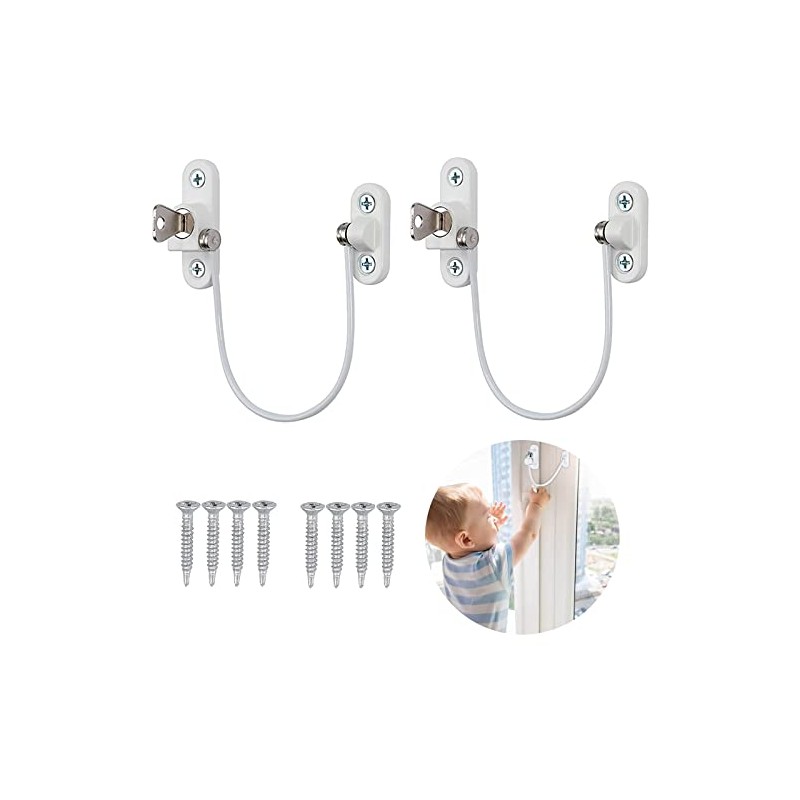 - Xelparuc Window Restrictor Locks, 2Pcs Professional UPVC Window Restrictor Locks, Child Baby Safety Security Wire Catch with Screw Keys Safety