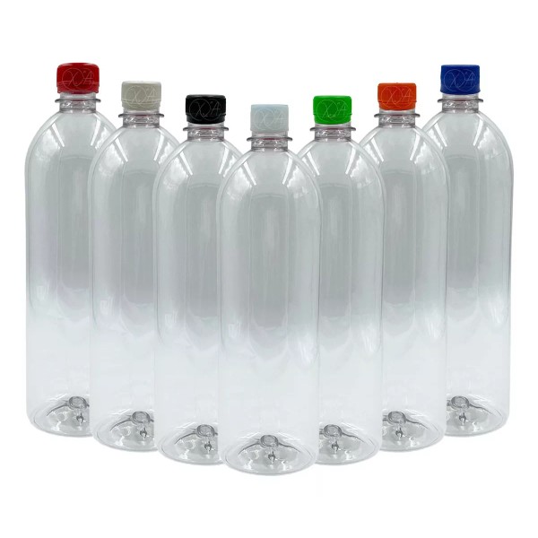 Botella Boston 1 Litro Transparente con tapa de seguridad colores a elegir.