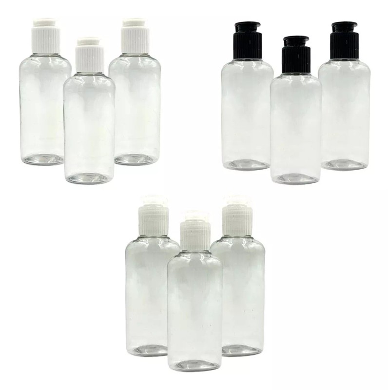Envase de Plástico 30 ml Oval con Tapa Flip Top Blanca, Negra o Transparente.
