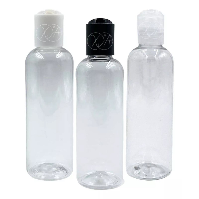 Envase de plástico 100 ml con Tapa Disco Negra, Blanca o Transparente.