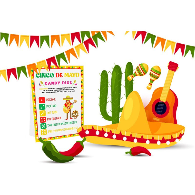 - You will get one Cinco de Mayo Candy Dice standing sign and 1 dice, it is good for a group to play on the party.