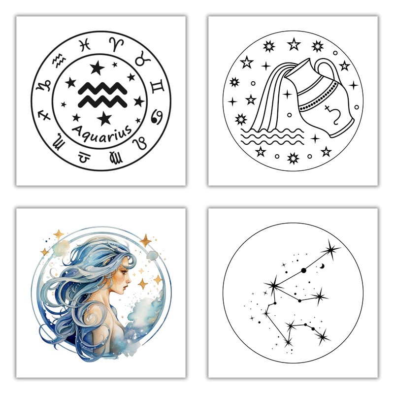 XERE 20 Pcs Aquarius Zodiac Sign Stickers, 2.5" Vinyl Decal Sticker for Laptop, Phone, Water Bottle, Car, Journaling Notebooks, Sketchbook, Bookmark Making, Junk Journal, Scrapbook Art Supplies