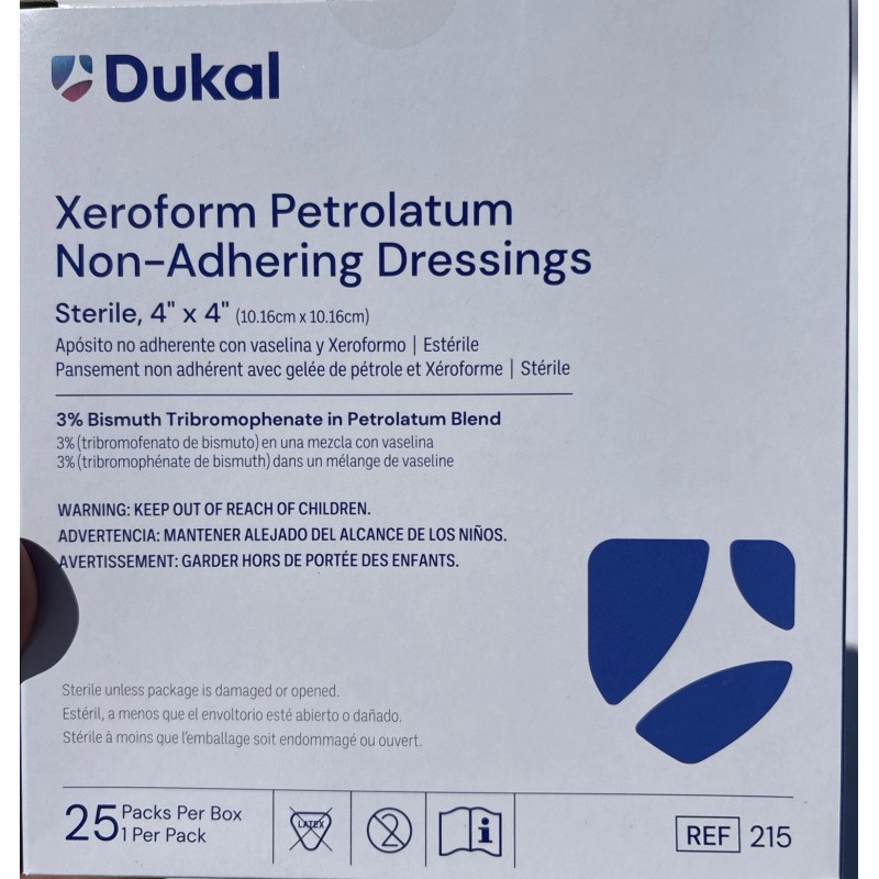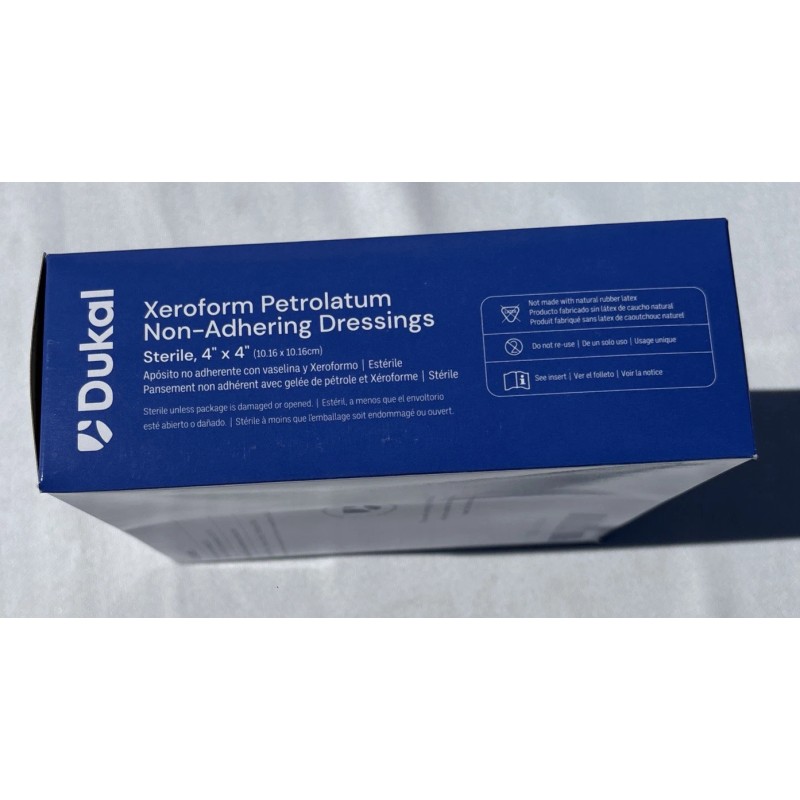 Dukal Xeroform Petrolatum Non-adhering Dressing 4"x4" 25ea/box Sterile.