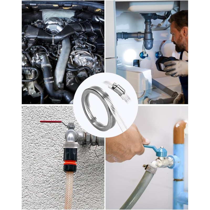 - Versatile applications: open up a wide range of applications with our adjustable stainless steel hose clamps. Ideal for automotive, industrial, marine, signs, household and more. Effortlessly connect pipes and hoses of different sizes and meet your requirements in different applications.